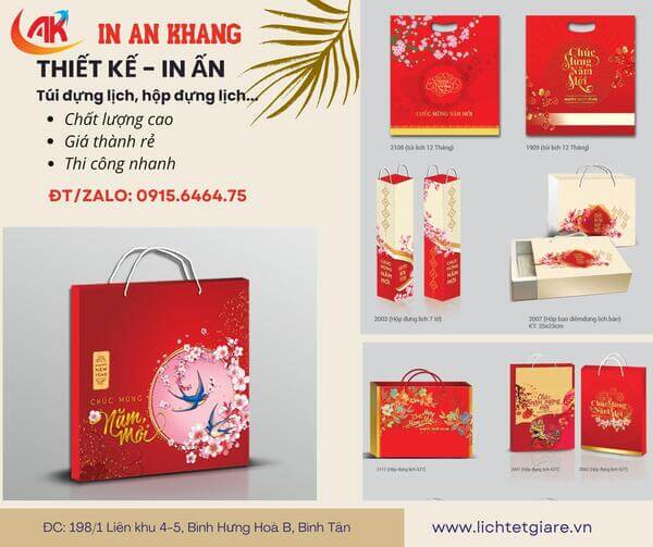 In An Khang có địa chỉ tại thành phố Hồ Chí Minh hiện đang là cơ sở in hộp đựng lịch độc quyền có quai xách chuyên nghiệp được nhiều khách hàng tin tưởng lựa chọn. Đến với chúng tôi, quý khách chắc chắn sẽ vô cùng hài lòng về chất lượng và giá thành của sản phẩm. Những mẫu hộp đựng lịch độc quyền có quai xách đẹp, tinh tế, hot nhất, xu hướng nhất đều có tại In An Khang, đáp ứng mọi nhu cầu sử dụng của khách hàng.