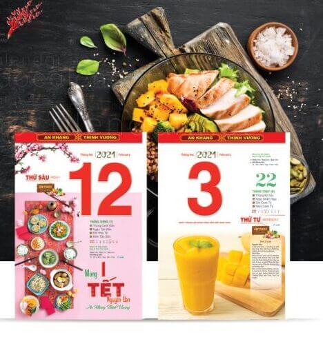 Bên cạnh những bộ bloc cao cấp Biển đảo Việt Nam, Bốn mùa yêu thương, Người Việt Kiêu Hùng, thì khách hàng rất ưa chuộng dòng lịch gần gũi với đời sống hằng ngày và ứng dụng được vào thực tế cuộc sống như bộ lịch Ẩm thực và sức khỏe. Với hình ảnh đẹp, đặc sắc về các món ăn, chắc chắn người nhận khi cầm được bộ lịch trên tay sẽ rất vừa lòng.
