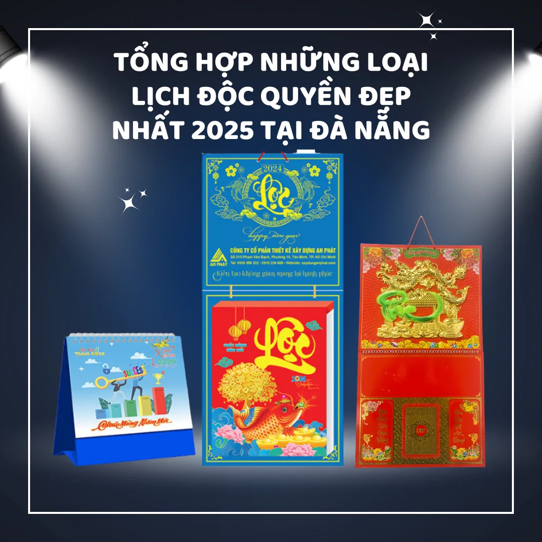 Khám phá những mẫu lịch độc quyền đẹp nhất 2025 tại Đà Nẵng. Từ lịch bloc, lịch để bàn đến lịch treo tường, tất cả đều được thiết kế tinh tế, chất lượng cao. Món quà tặng ý nghĩa và công cụ quảng bá thương hiệu hiệu quả.